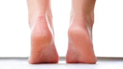 Pés desidratados podem apresentar pele grossa, ressecamento, descamação, fissuras e até sangramentos.